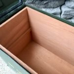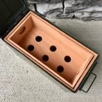 The interior sides and bottom are lined with precision milled 1/4″ thick Spanish Cedar. It is the preferred lining for high-end humidors since it offers natural protection from tobacco worms and mold. Joints feature beautiful 45 degree angled cuts. The bottom exterior is lined with olive drab green felt to prevent your ammo box humidor from scratching any delicate table top surfaces.