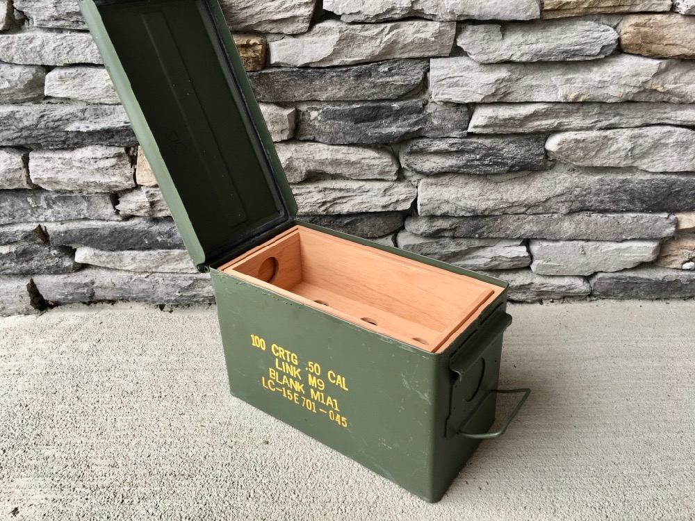 All ammo cans are thoroughly cleaned and sanitized prior to becoming an Ammodor – they will not ruin your cigars with harmful odors! Learn more about our cleaning process.